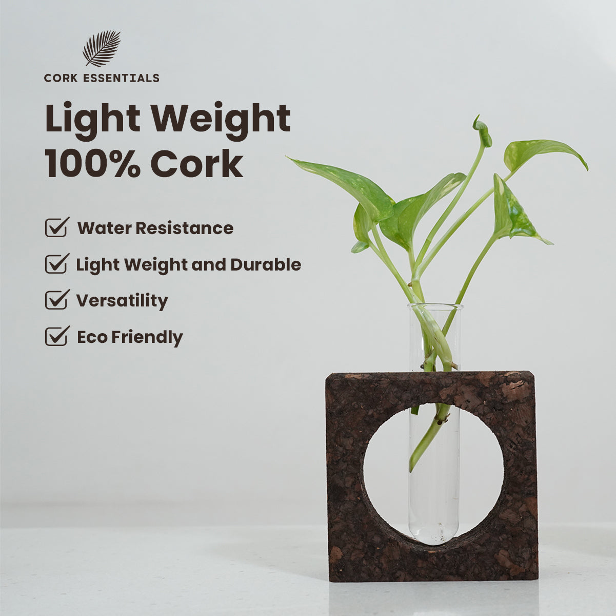 This planter is complemented by a glass propagation tube, allowing you to explore the fascinating world of plant propagation. This tube acts as a propagation promoter, encouraging robust growth and a thriving in-home garden. Moreover, the unique tube view from the Bark Cork Case provides a stunning showcase for your plant, transforming it into a living art piece.