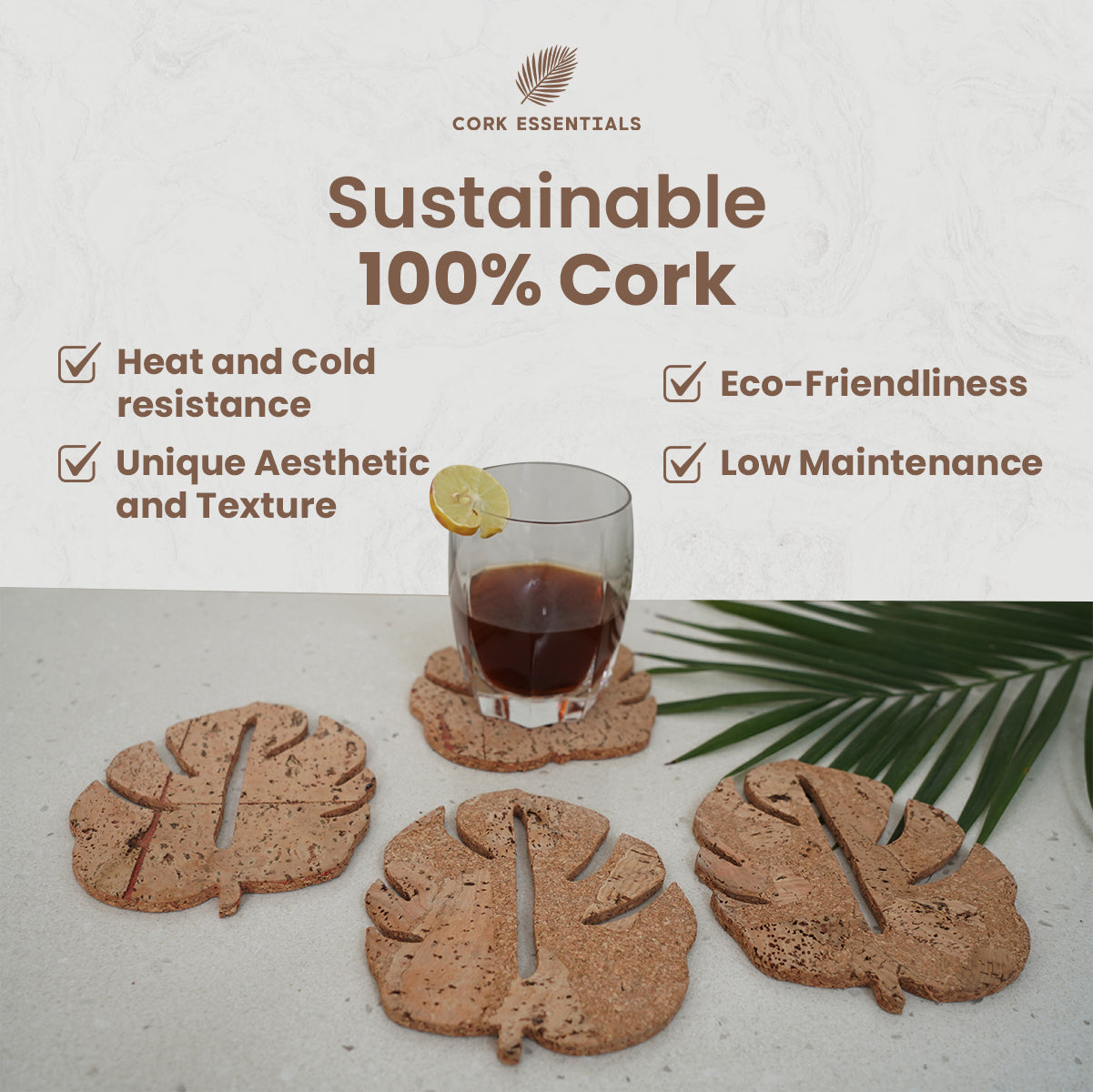 Introducing the LEAF CORK COASTER SET OF 4 130X110X5MM by Cork Essentials, an essential addition to your homeware collection that perfectly combines functionality, elegance, and sustainability. Our premium leaf cork coasters are meticulously crafted from 100% natural cork sourced responsibly from Portugal and Spain with FSC certification, ensuring a high-quality finish that is both water and heat resistant, making them ideal for protecting your surfaces from unsightly water rings and heat damage.