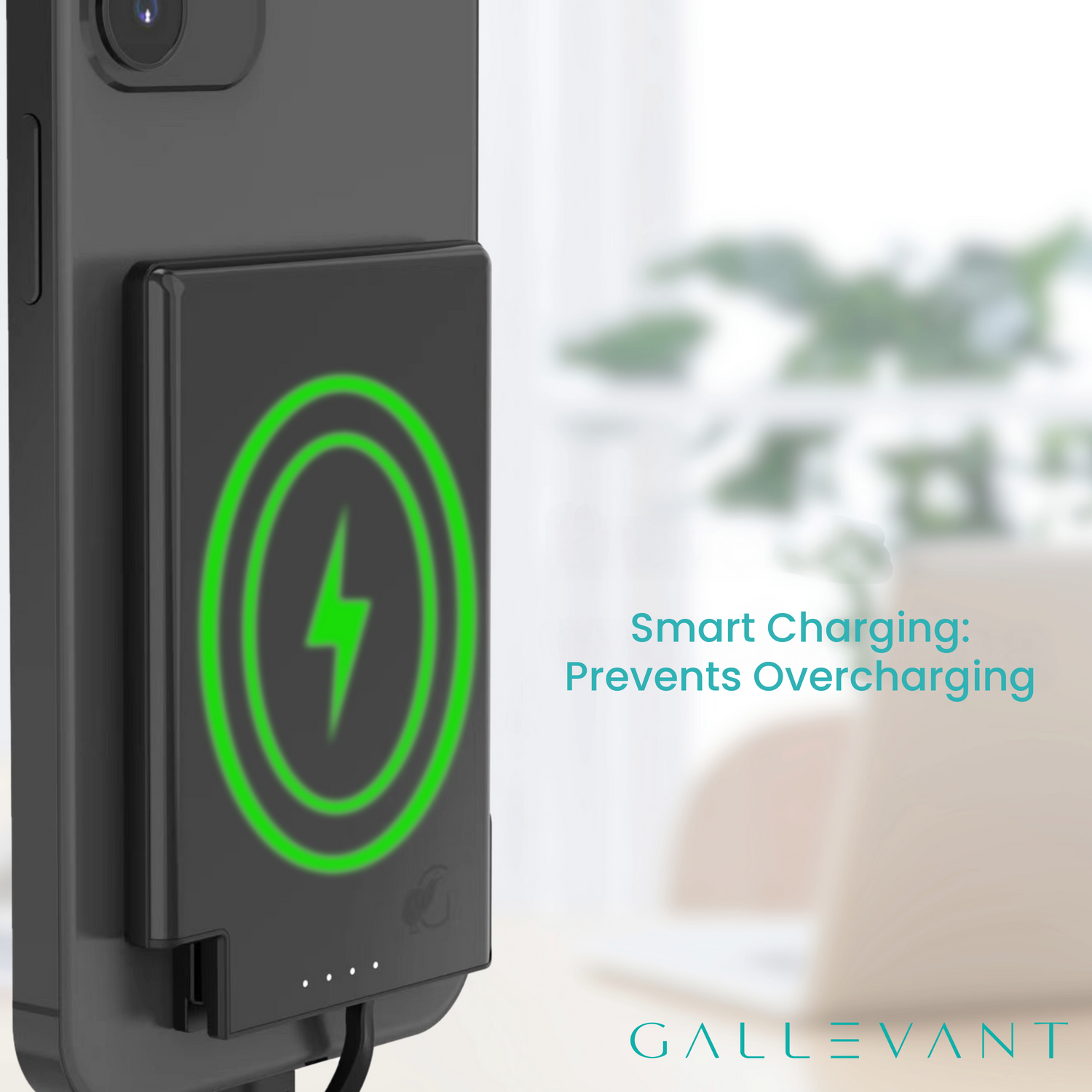 Gallevant SlimCharge™ 5000mAh Magnetic Power Bank with Built-In Cables (Lighting)