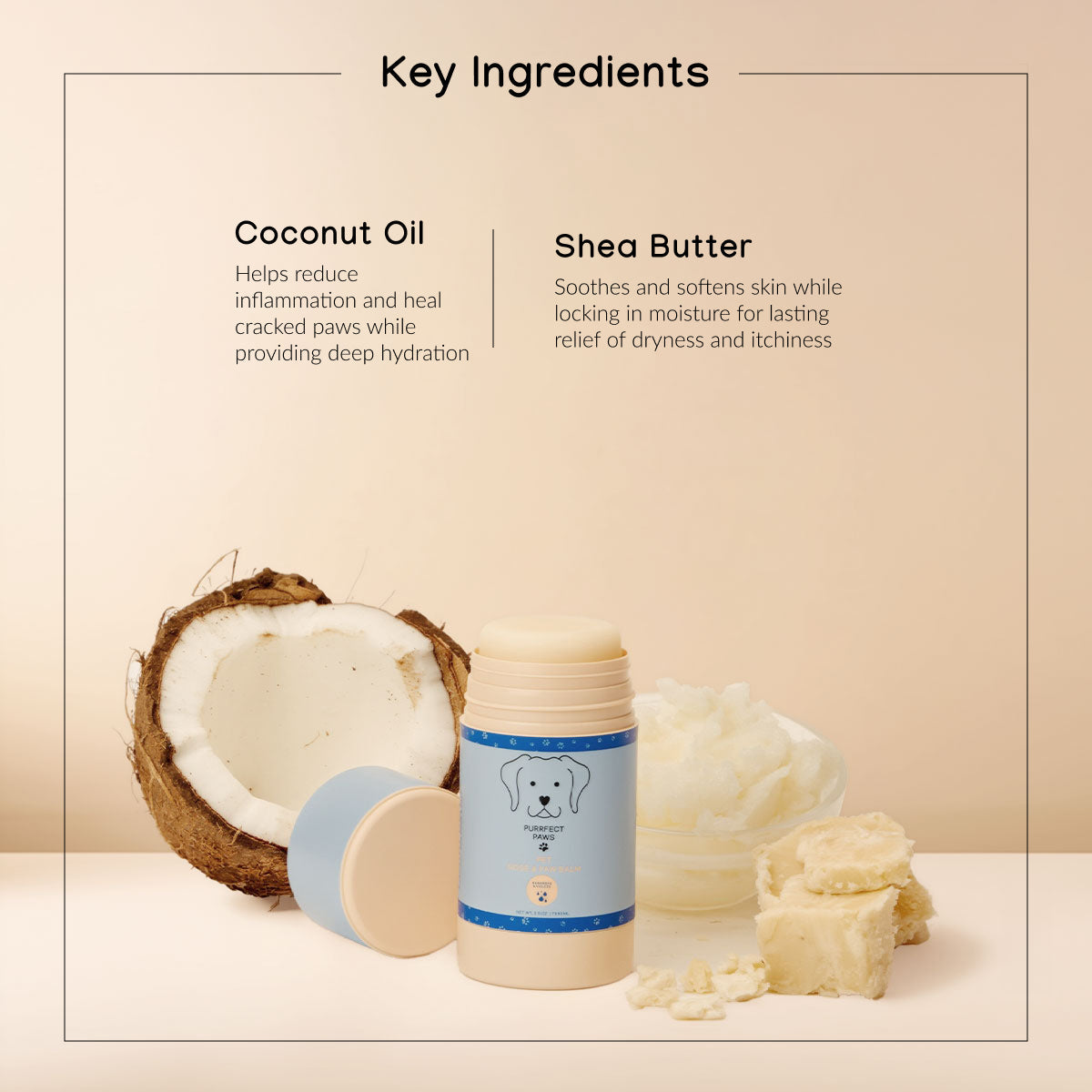 Dry, cracked paws don’t stand a chance against our ultra-moisturizing Purrfect Paws Pet Paw Balm. The gentle non-greasy formula absorbs quickly, using the natural powers of rich coconut oil and nourishing shea butter to deliver healing hydration. From dry winter air to hot summer sidewalks, our portable, mess-free roll-on balm makes it easy to soothe, hydrate, and protect your pet’s most delicate areas anytime, anywhere.