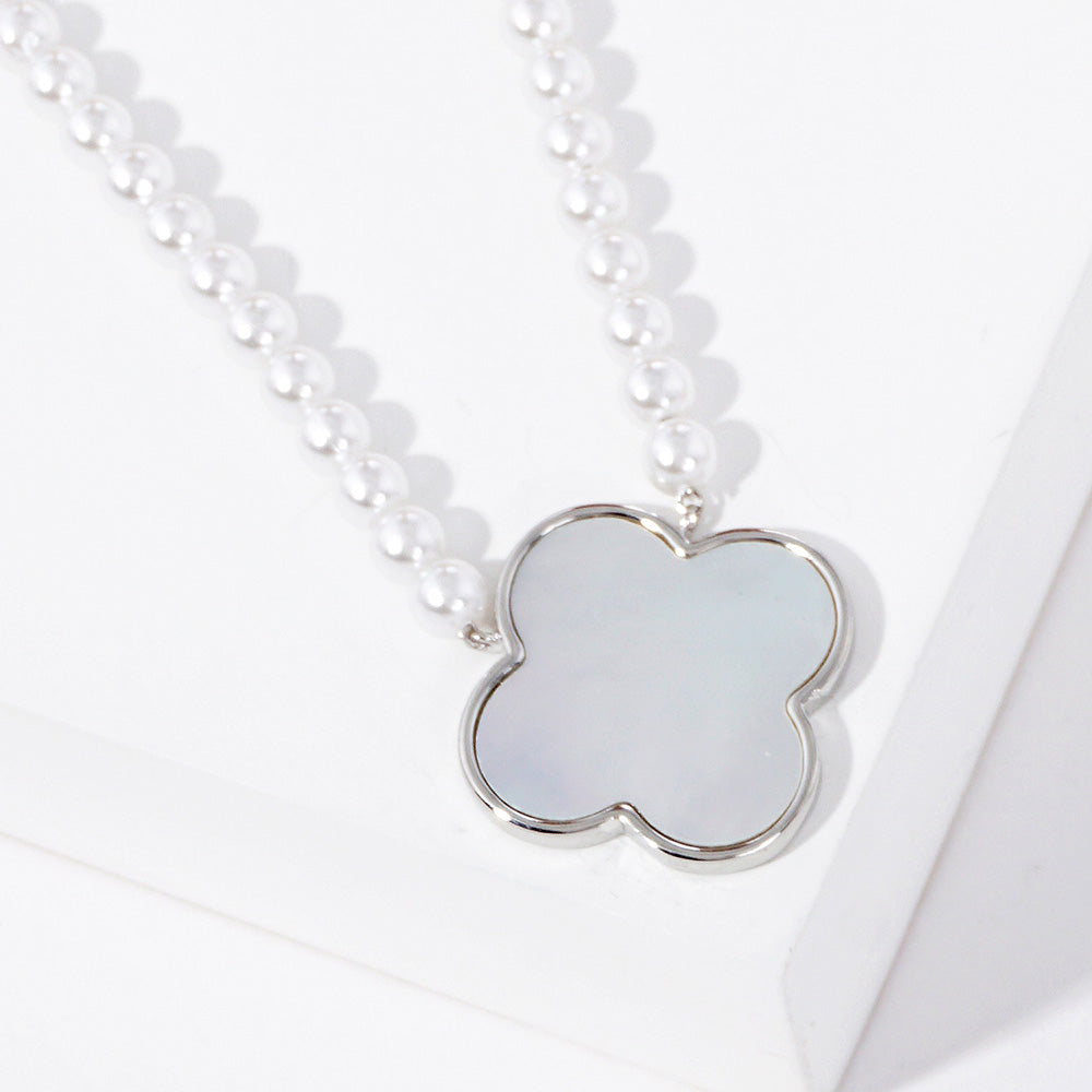 Our best selling clover on a chic faux pearl necklace.