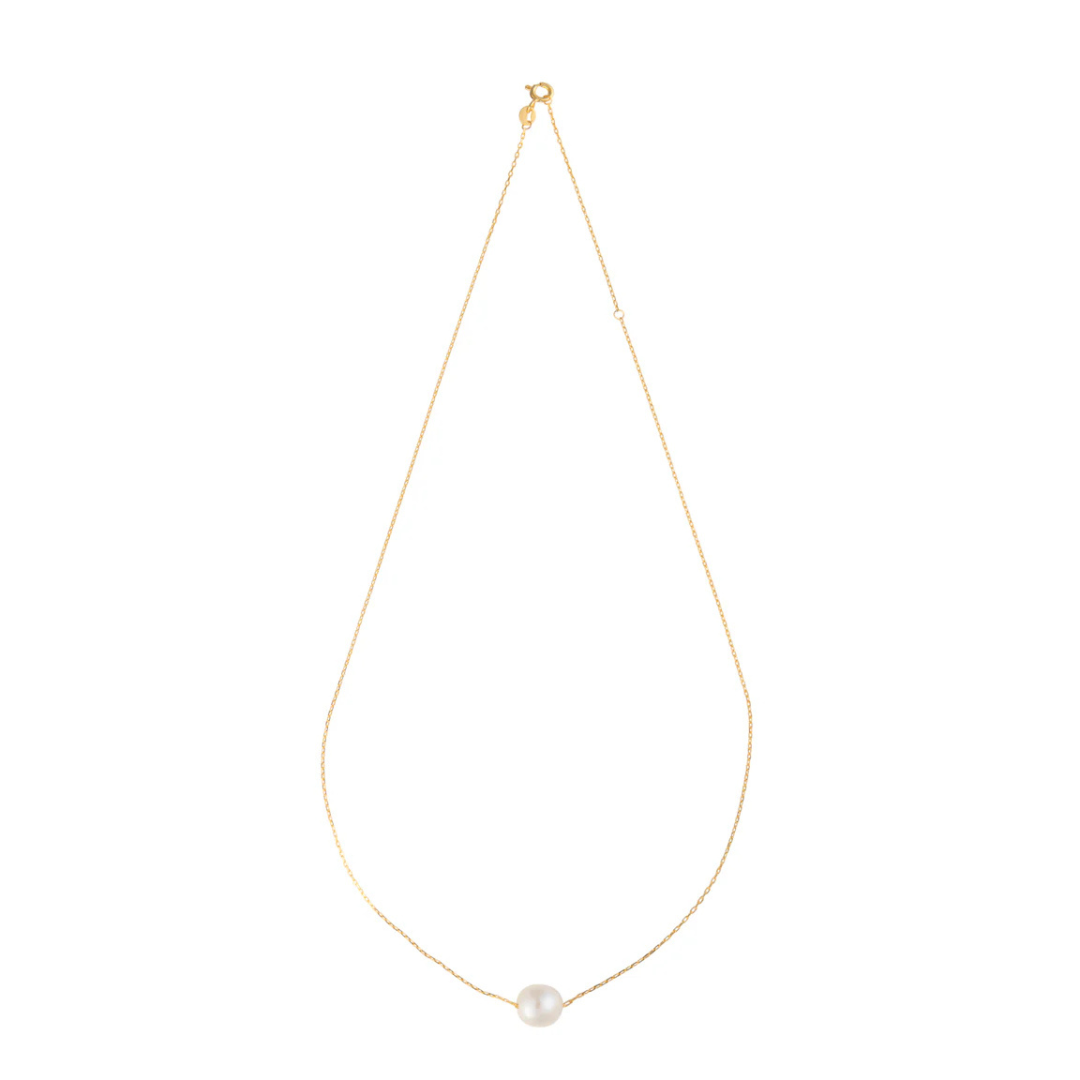 Dog House Pearls Signature Floating Pearl Necklace on Gold Chain - Gold and White