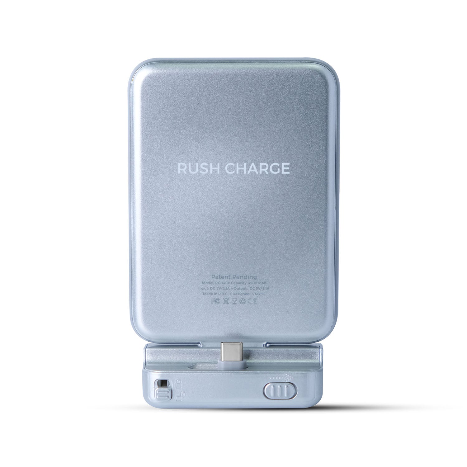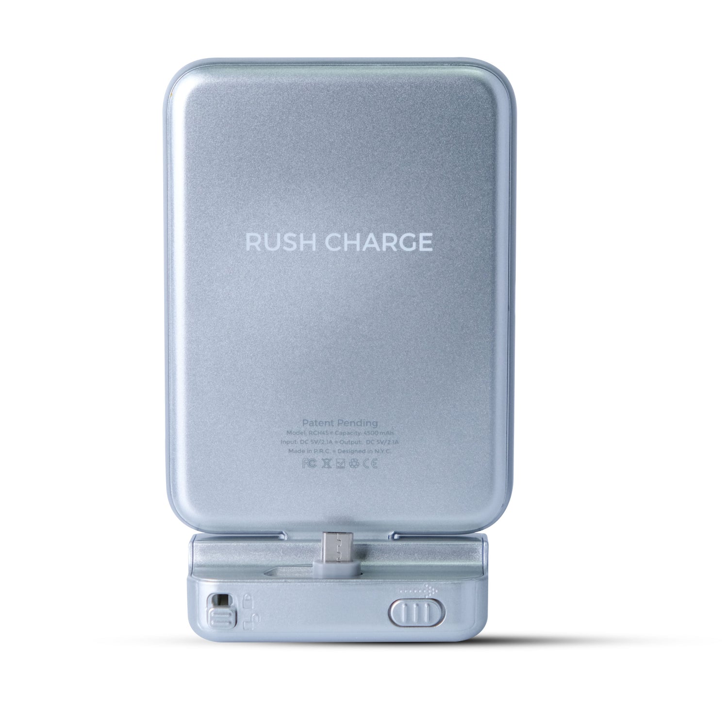 The Rush Charge Hinge is the perfect all-in-one device suited for anyone on the go and always has their hands full. The Hinge is a phone stand and charger that allows you to secure your phone in 1 of 4 angles while at the same time charging your phone. The Rush Charge Hinge also comes pre-charged and ready to use straight out of the box. Maximize your life today with the Rush Charge Hinge.