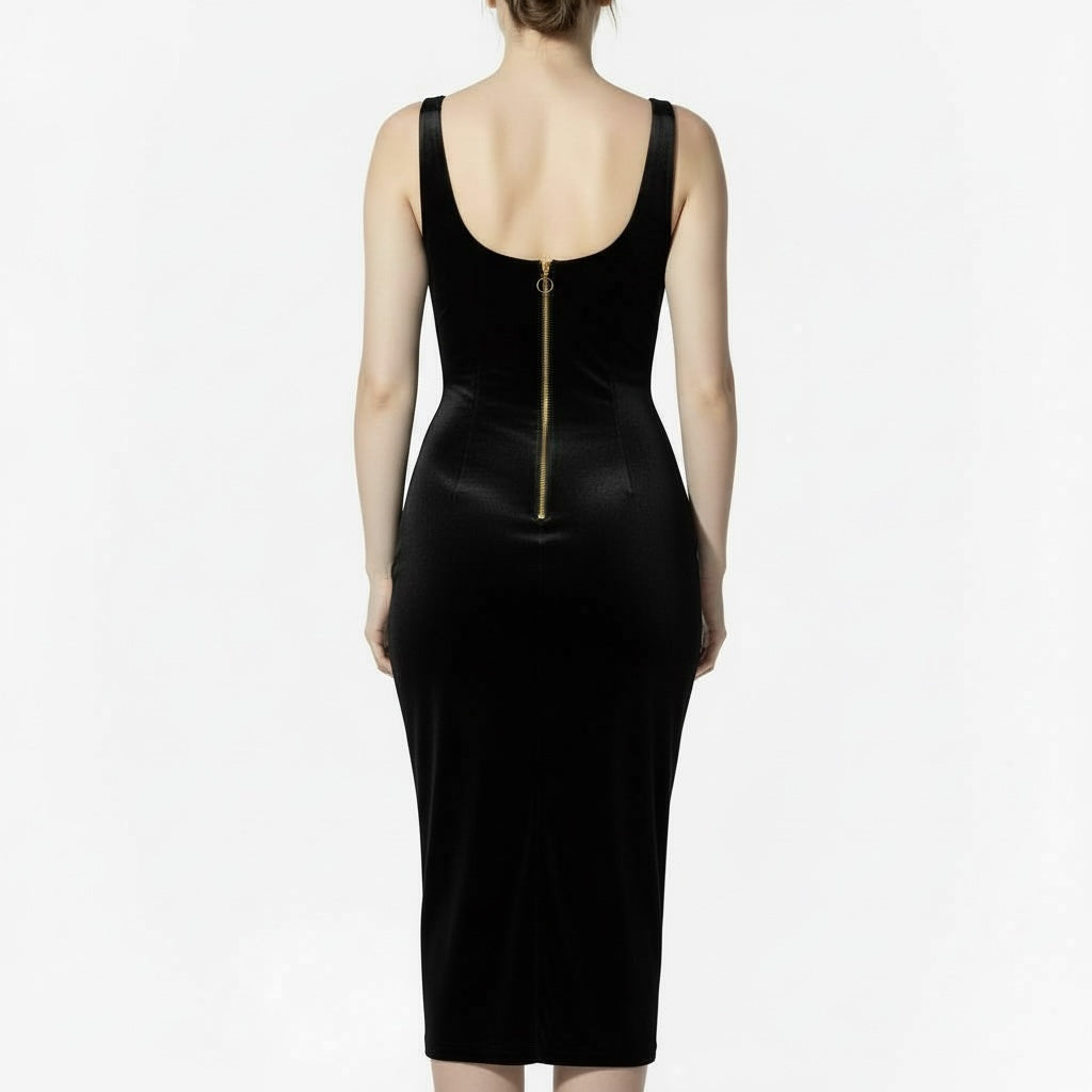 Scoop Neck Velvet Dress Shaper Triple Tummy Layer