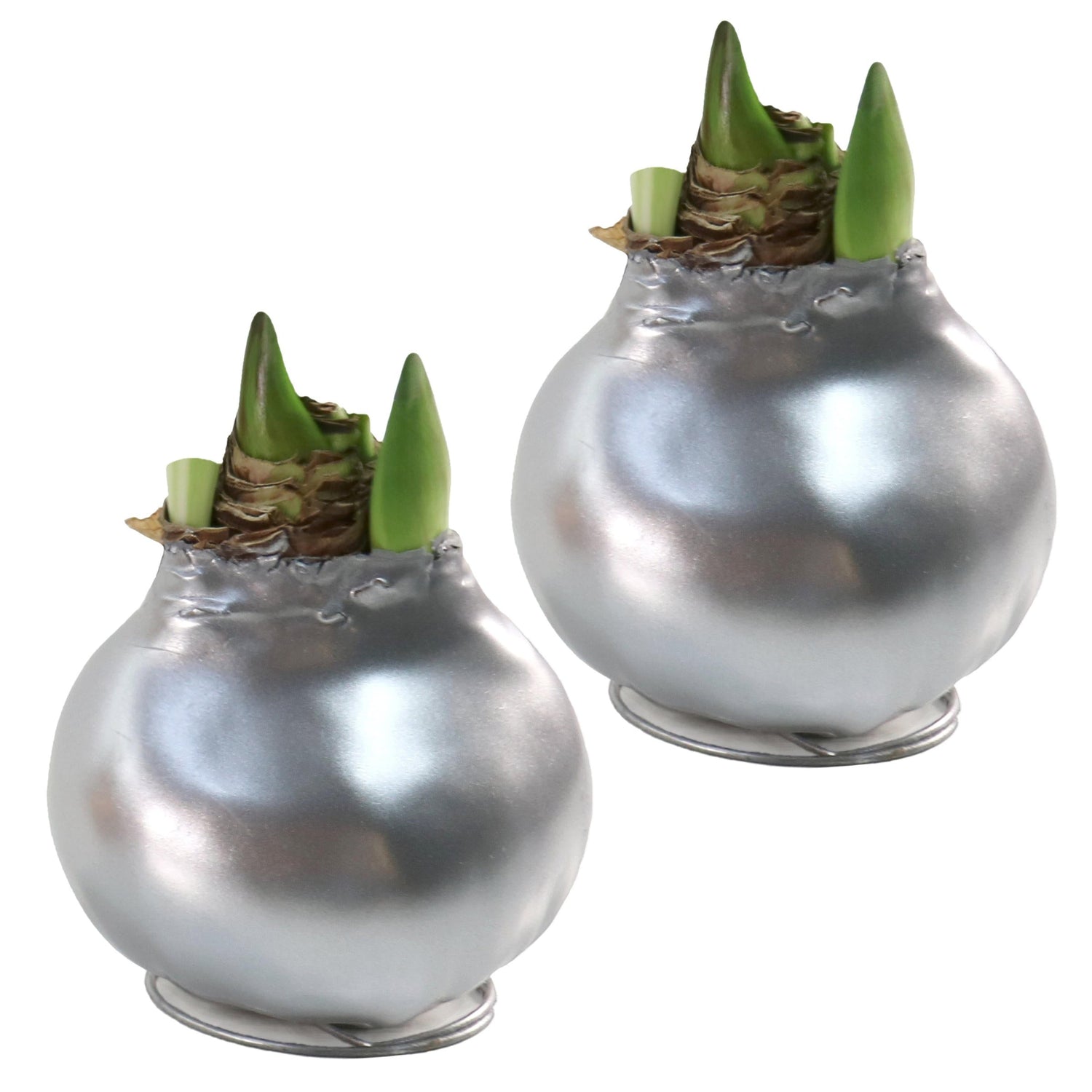 Cottage Farms Direct 2-Piece Metallic Silver Waxed Amaryllis