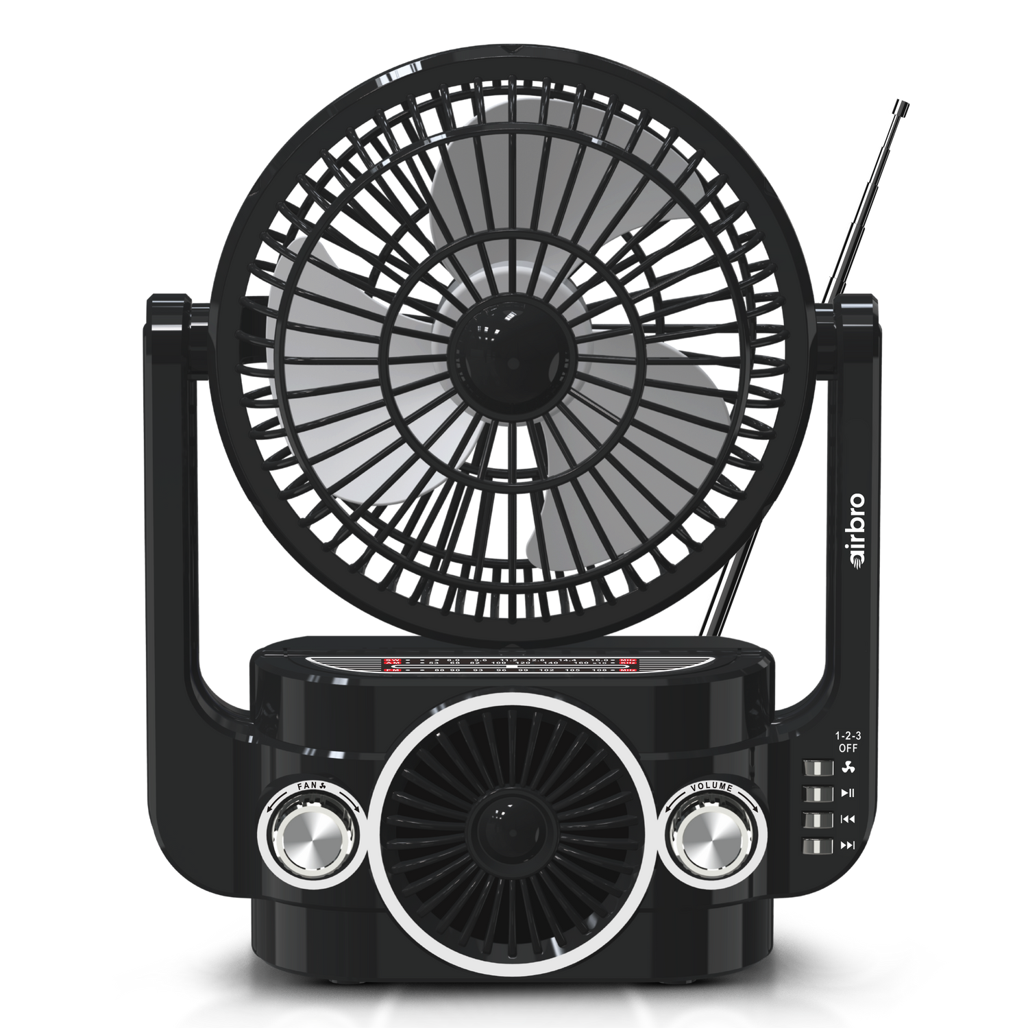 Airbro AirBro-Rechargeable Fan & Speaker – AM/FM/SW Radio, 3-Speed Fan, Bluetooth, MP3, Type-C Charging