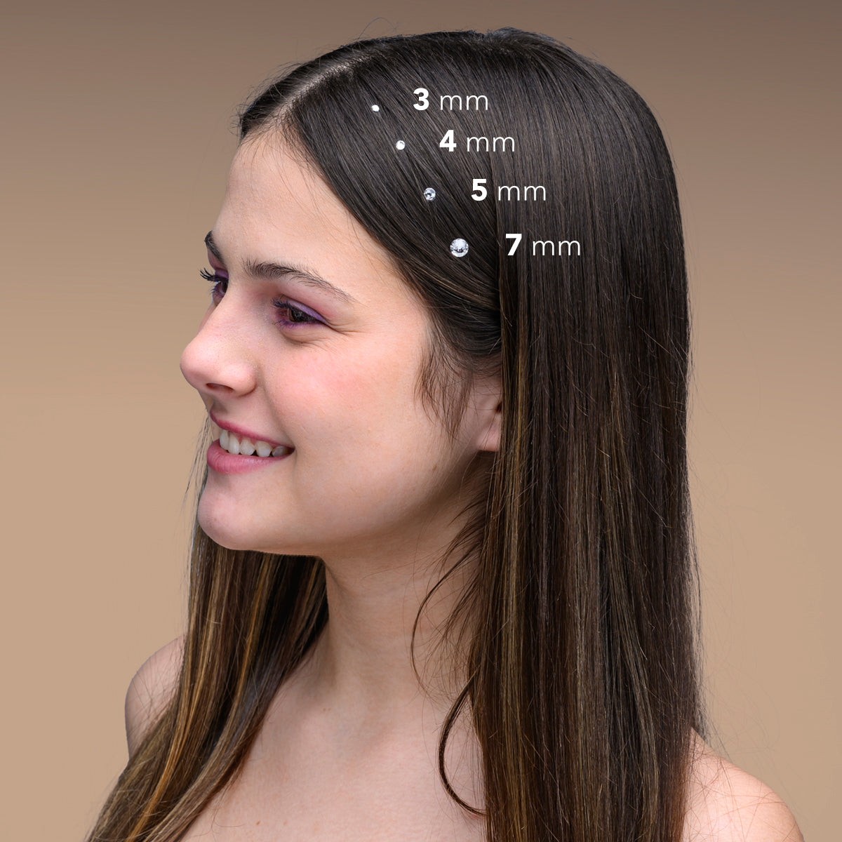 Our crystals have our proprietary adhesive on the underside, so they are safe for hair (& skin)! When you’re ready to remove the crystals, simply brush them out.