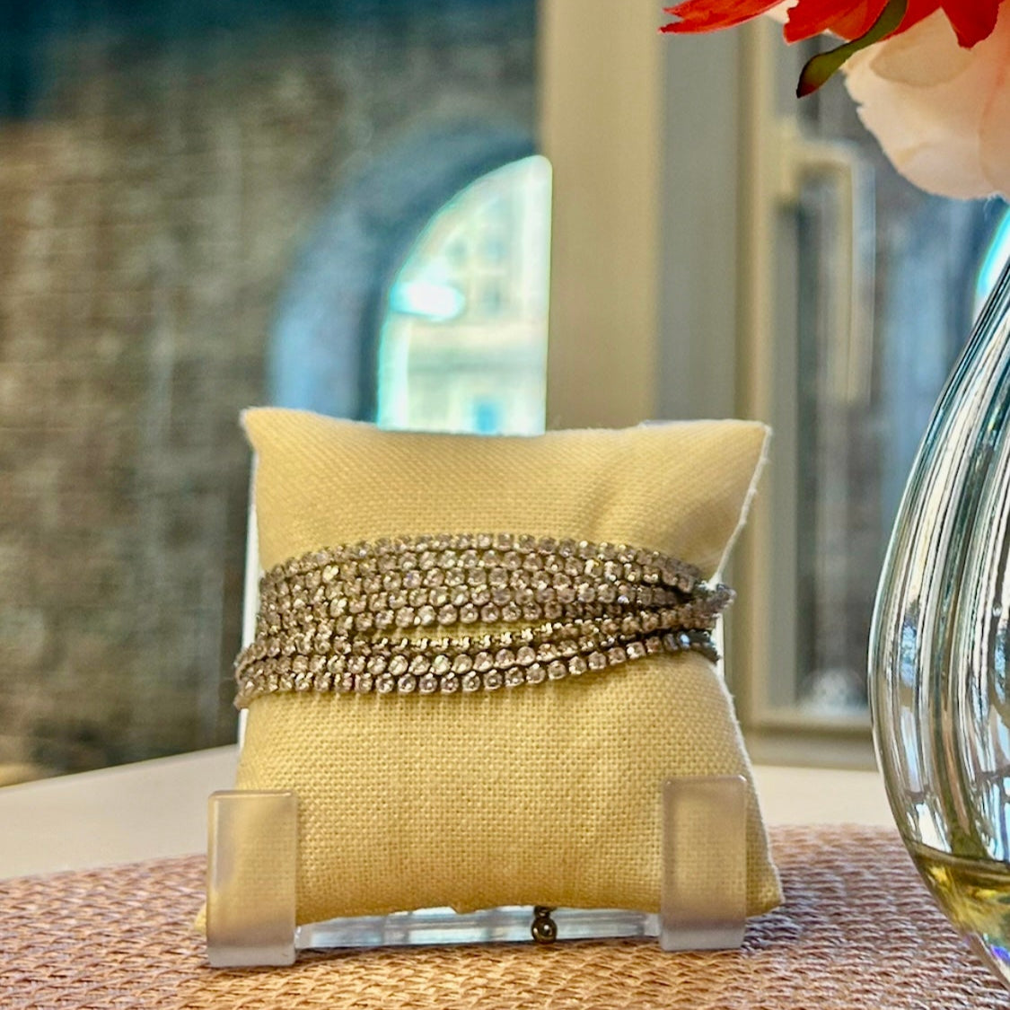 Lisa Stewart Jewelry CZ BEZEL ADJUSTABLE PULL TIE BRACELET - SILVER