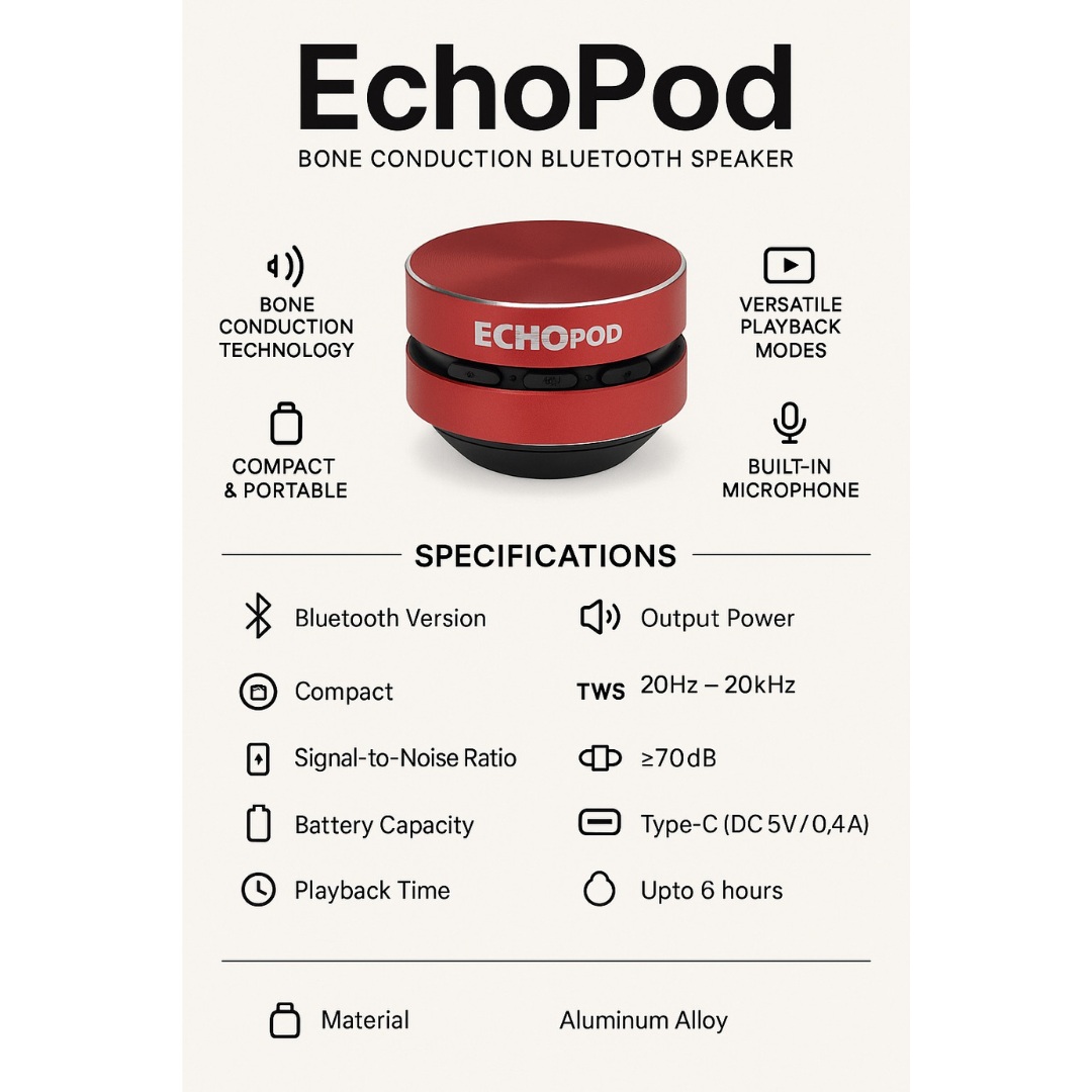 Meet the speaker that doesn’t just sit — it transforms. This ultra-compact bone conduction speaker uses vibrations to turn any surface into sound. Think tables, windows, boxes, helmets, even guitar bodies.