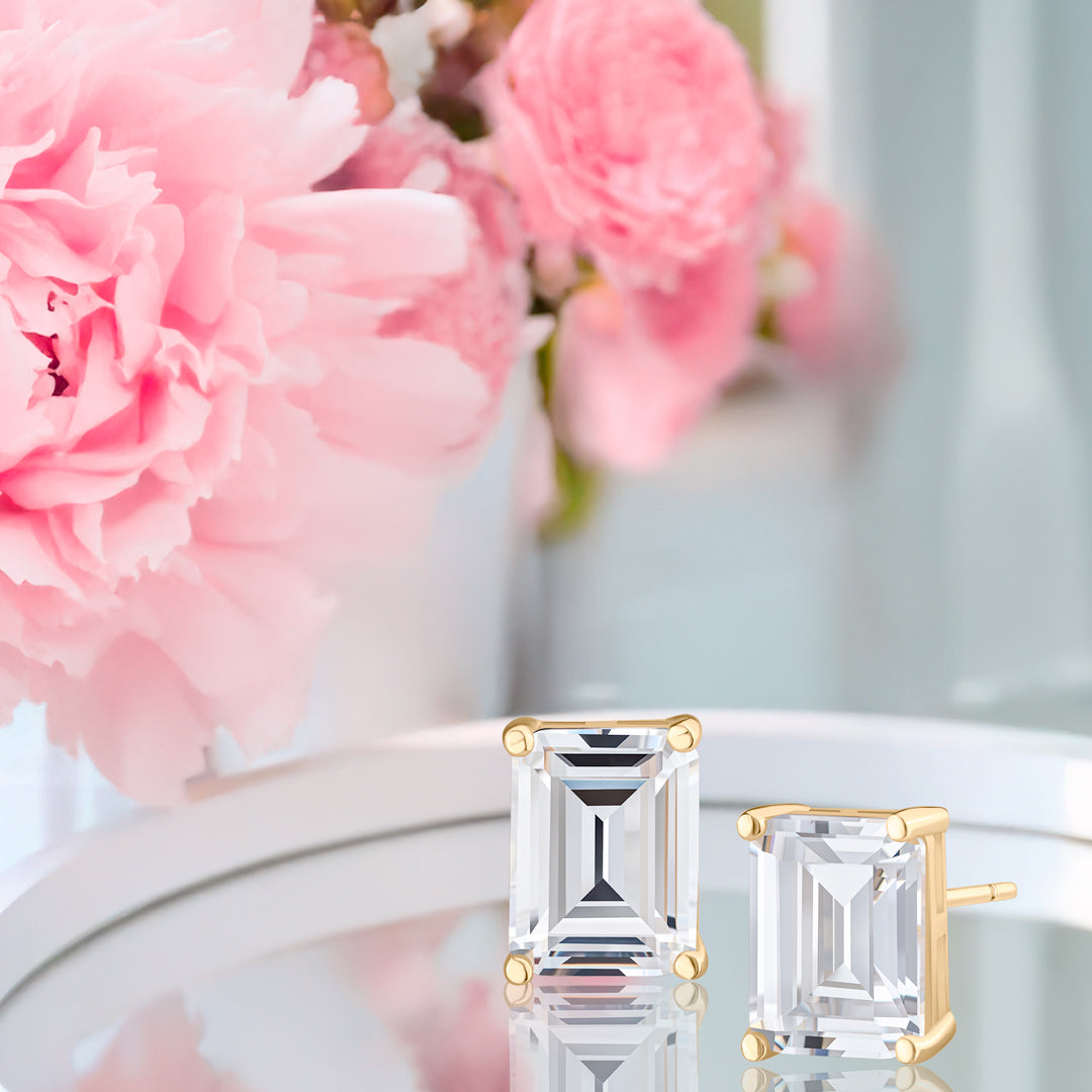 This gold-plated sterling silver stud features a stunning 2.8-carat total weight of brilliant-cut, emerald-shaped cubic zirconia, expertly hand-set to deliver the high-quality look of real diamonds. Crafted in high-quality sterling silver with sterling silver backs, these studs are an excellent choice for everyday wear. All pieces are presented in elegant packaging, making them perfect for gift-giving to loved ones or a special treat for yourself.