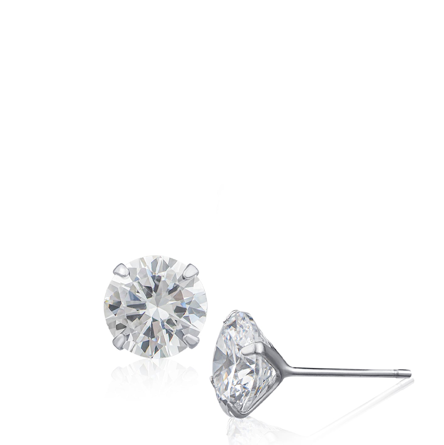 This sterling silver stud features a stunning 8mm round cubic zirconia, expertly hand-set to deliver the high-quality look of real diamonds. Crafted in high-quality sterling silver with sterling silver backs, these studs are an excellent choice for everyday wear. All pieces are presented in elegant packaging, making them perfect for gift-giving to loved ones or a special treat for yourself.