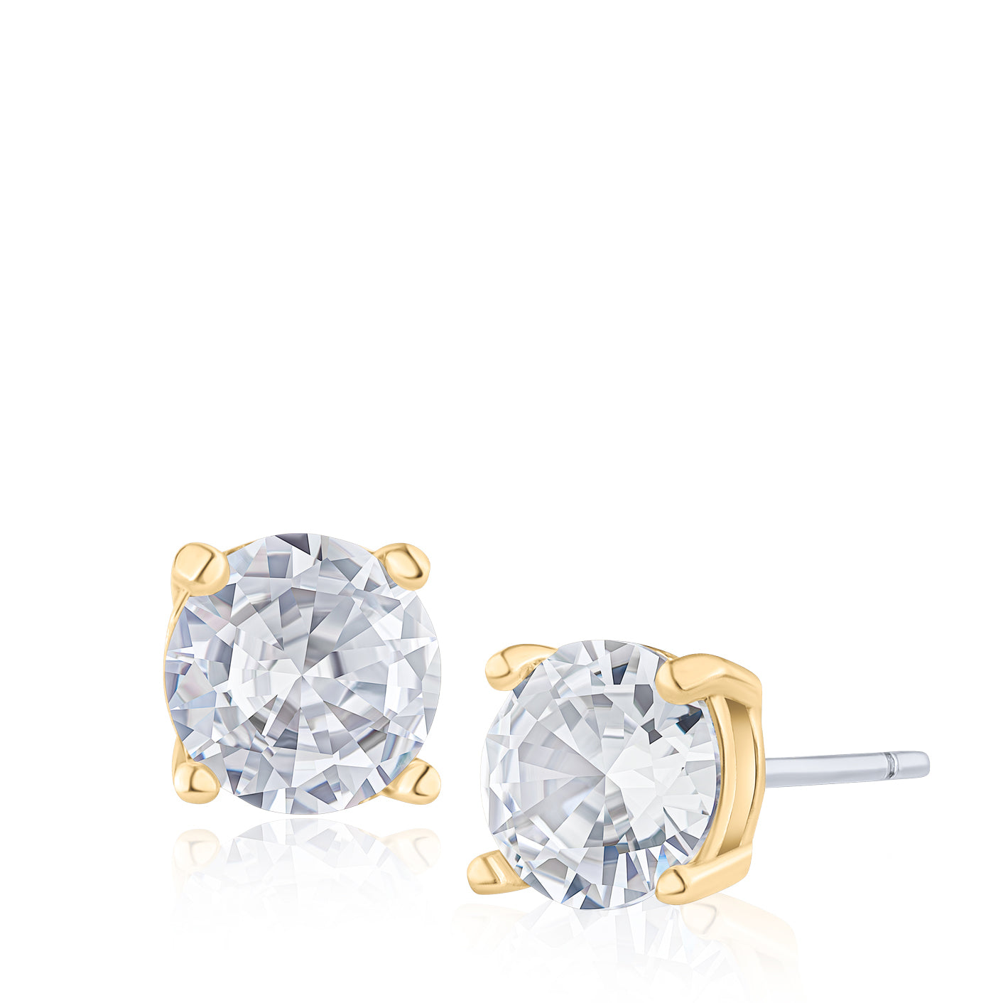 This gold-plated sterling silver stud features a stunning 2 carat total weight round cubic zirconia, expertly hand-set to deliver the high-quality look of real diamonds. Crafted in high-quality sterling silver with sterling silver backs, these studs are an excellent choice for everyday wear. All pieces are presented in elegant packaging, making them perfect for gift-giving to loved ones or a special treat for yourself.
