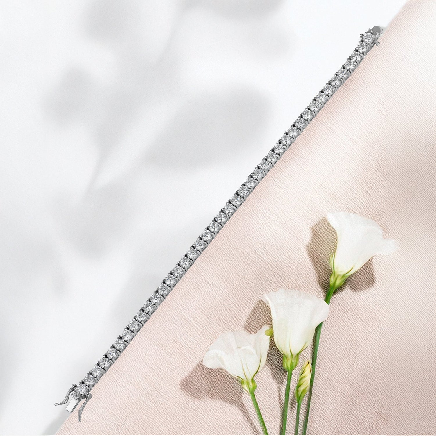 This sterling silver bracelet features a stunning 7 carat total weight round cubic zirconia, expertly hand-set to deliver the high-quality look of real diamonds. Crafted in high-quality sterling silver, this tennis bracelet is an excellent choice for everyday wear. All pieces are presented in elegant packaging, making them perfect for gift-giving to loved ones or a special treat for yourself.