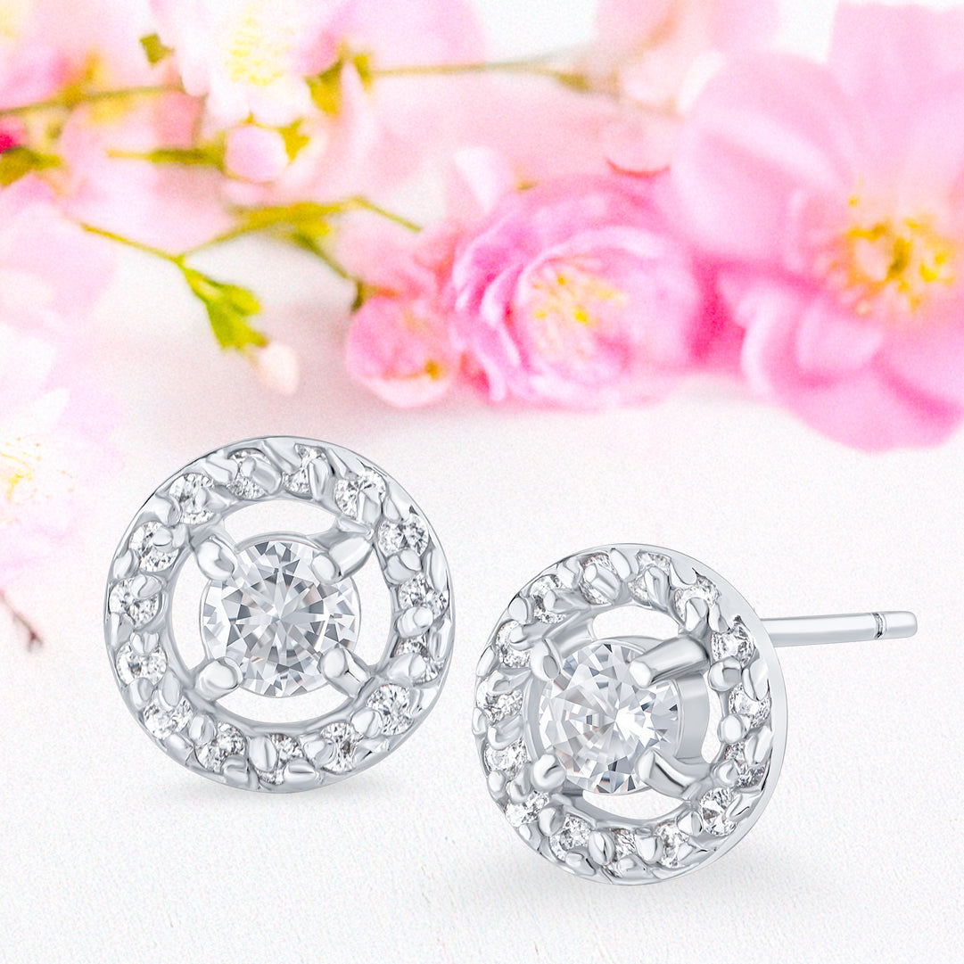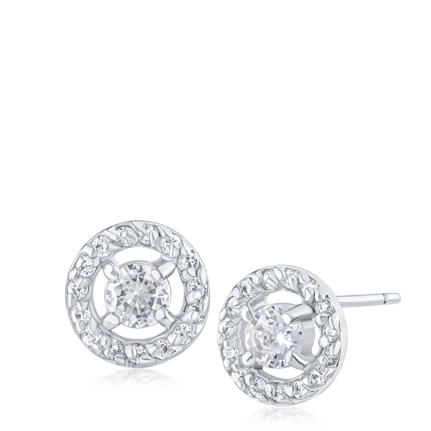 Ice by Jardin Ice by Jardin Sterling Silver Round Halo Stud Earring