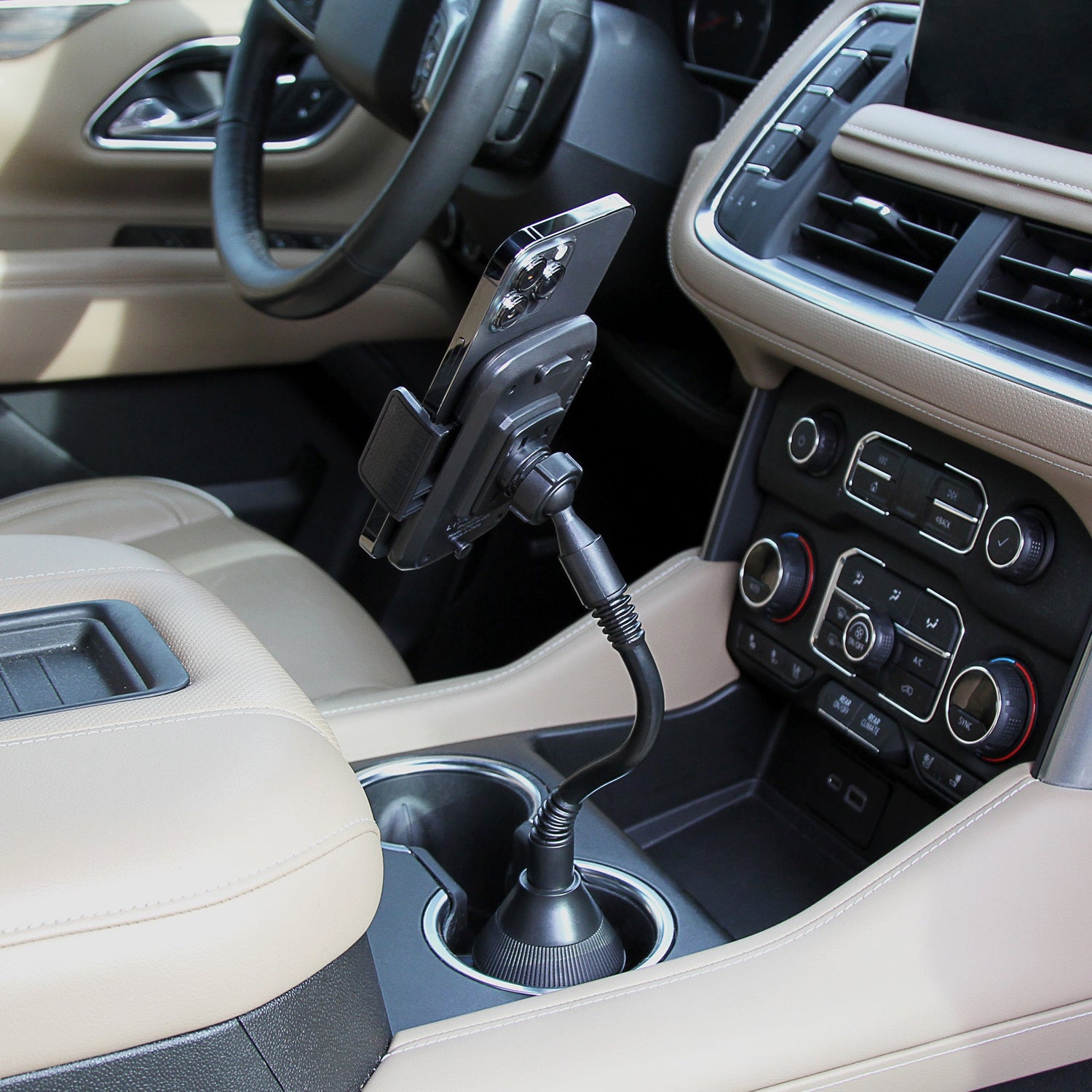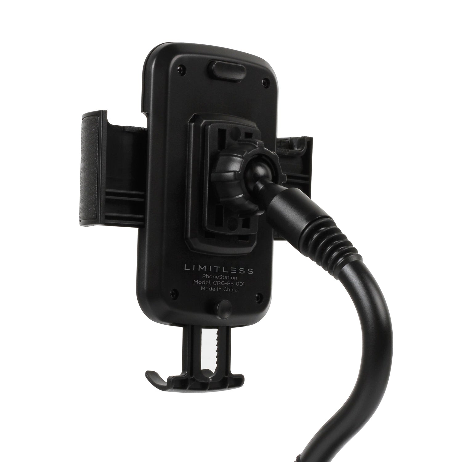 Go hands-free while on the road with the Limitless PhoneStation. Achieve the perfectly positioned phone display for optimal viewing by using the Adjustable Cup Holder Base or Air Vent Clip.