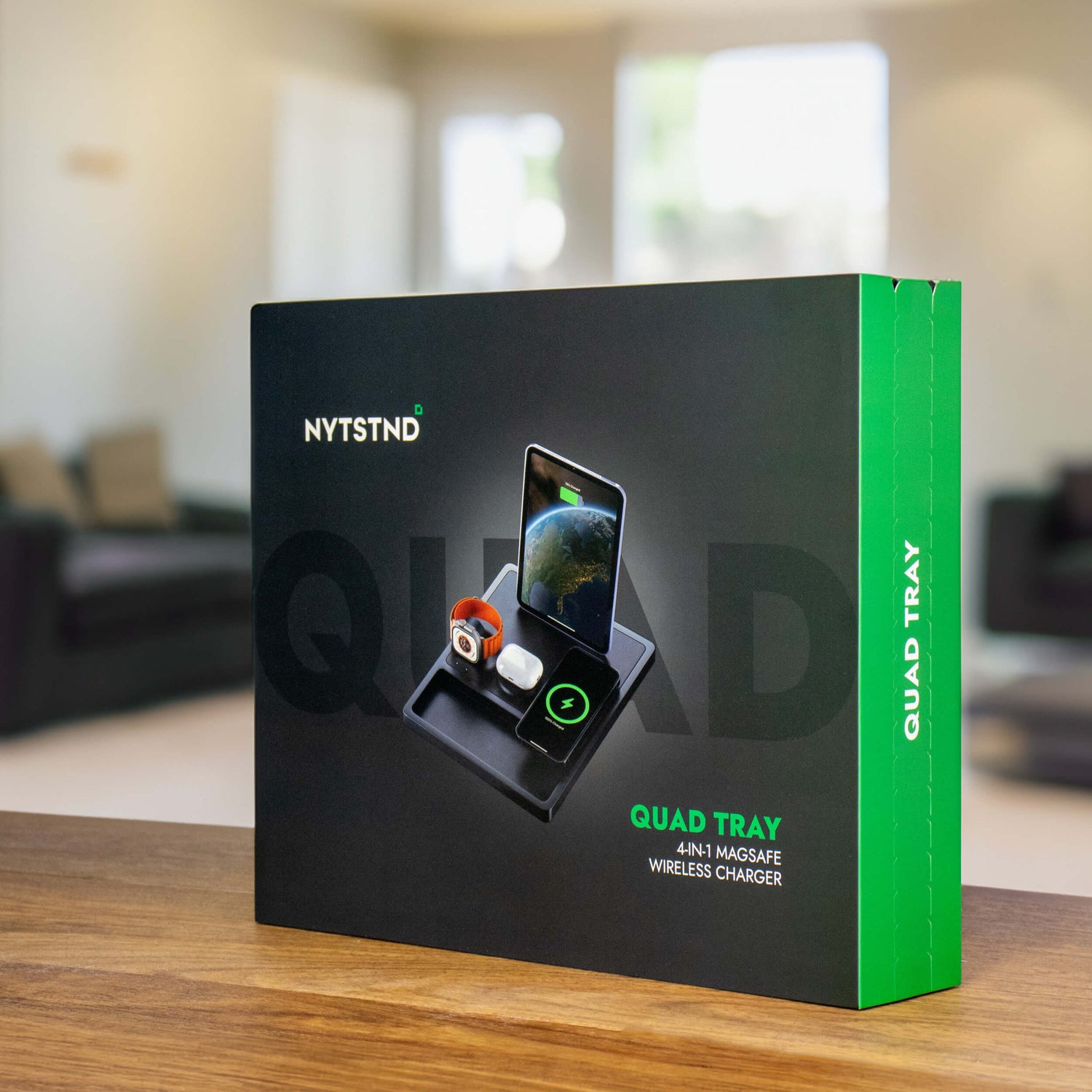 NYTSTND QUAD TRAY Black - 4-in-1 MagSafe Midnight Black Wireless Charger with iPad Stand Support