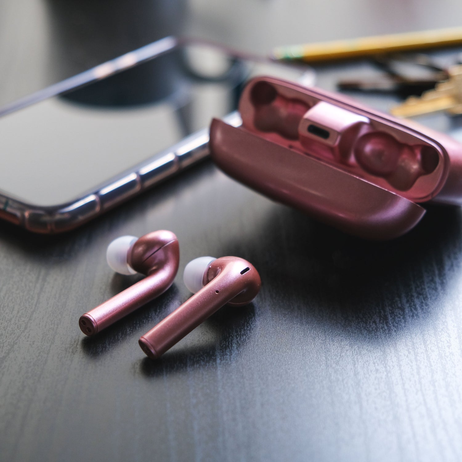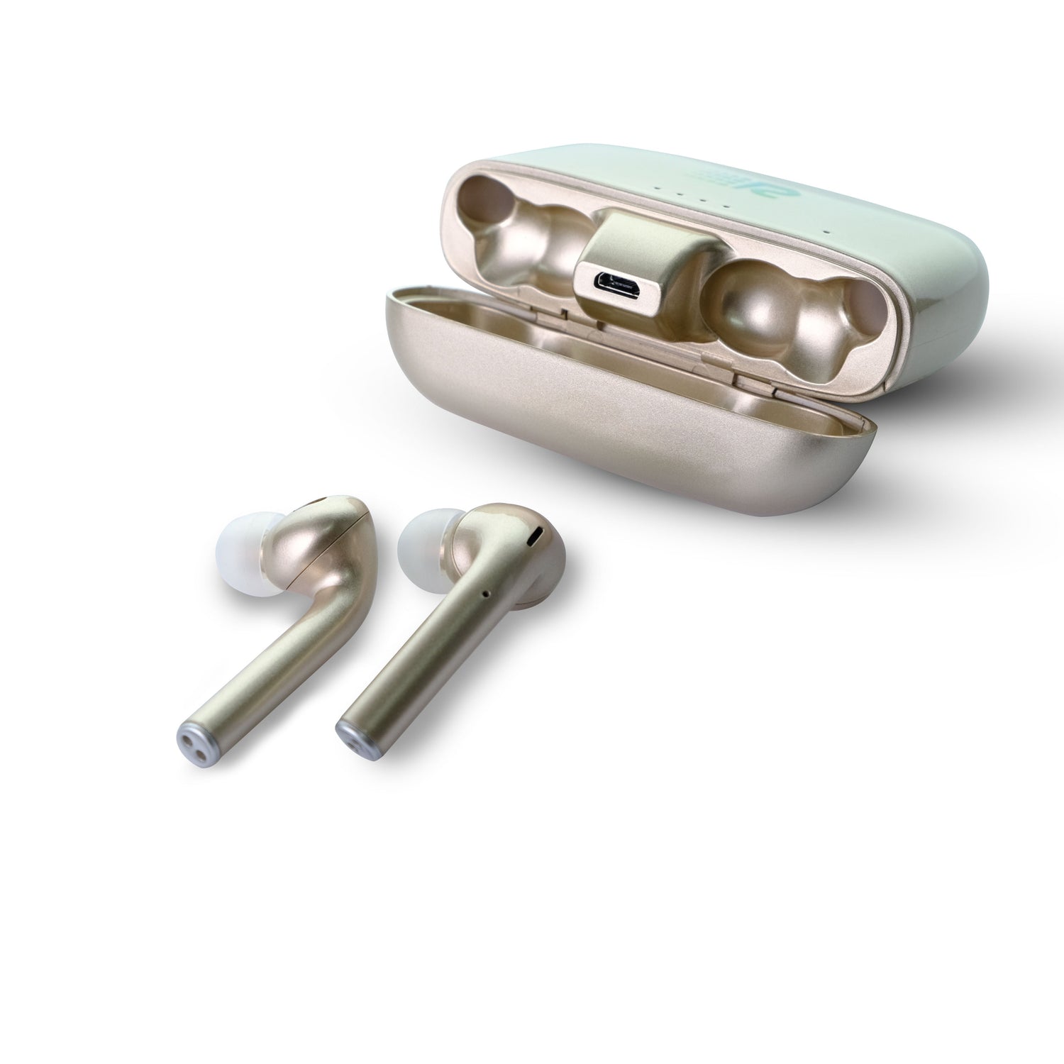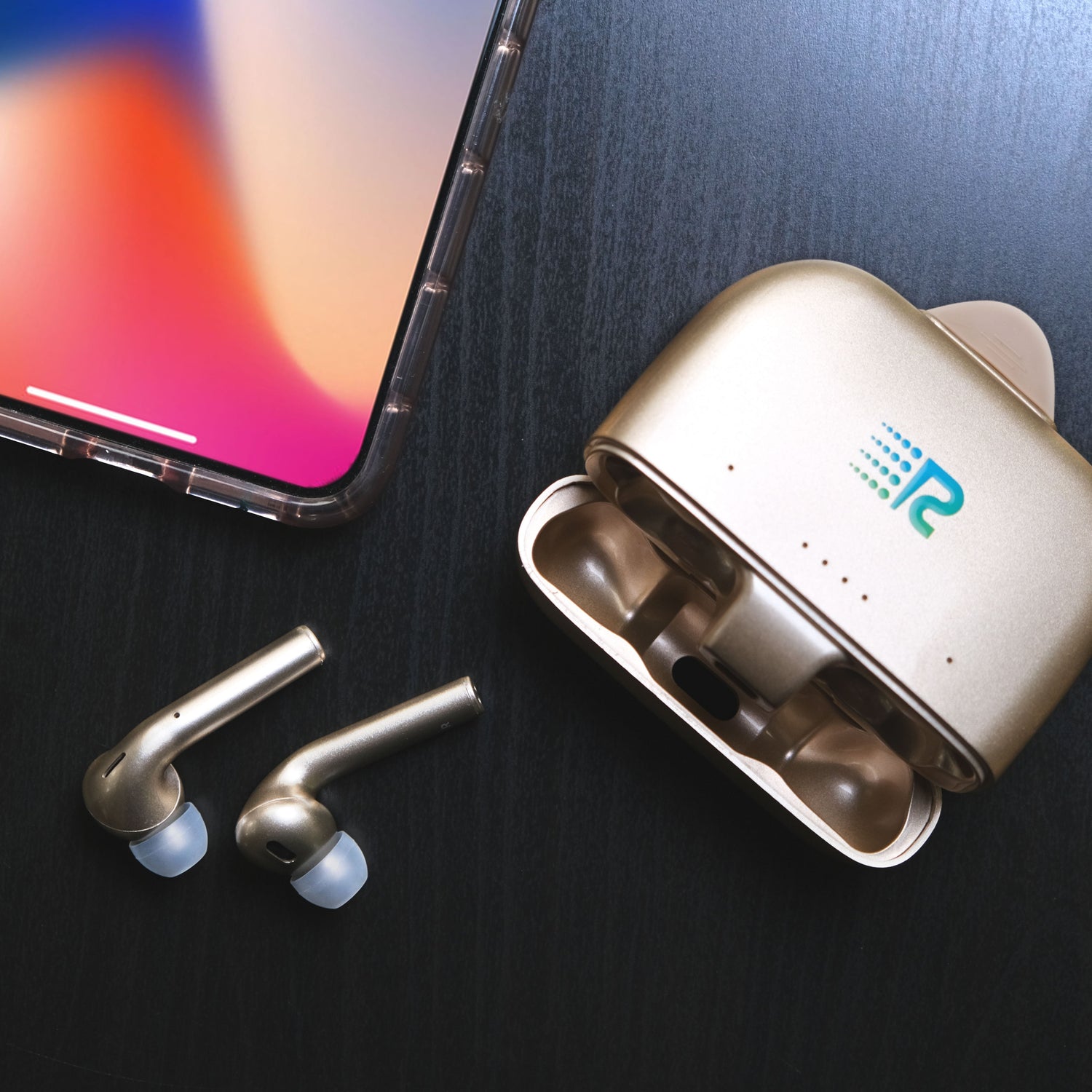 Listen to music, podcasts, and more using these high-quality Bluetooth earbuds with a charging case that can also charge your smartphone, cable-free.