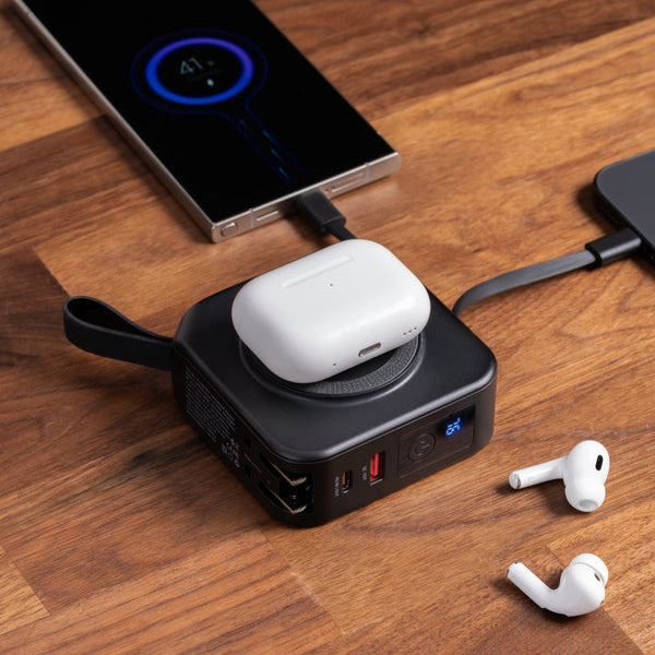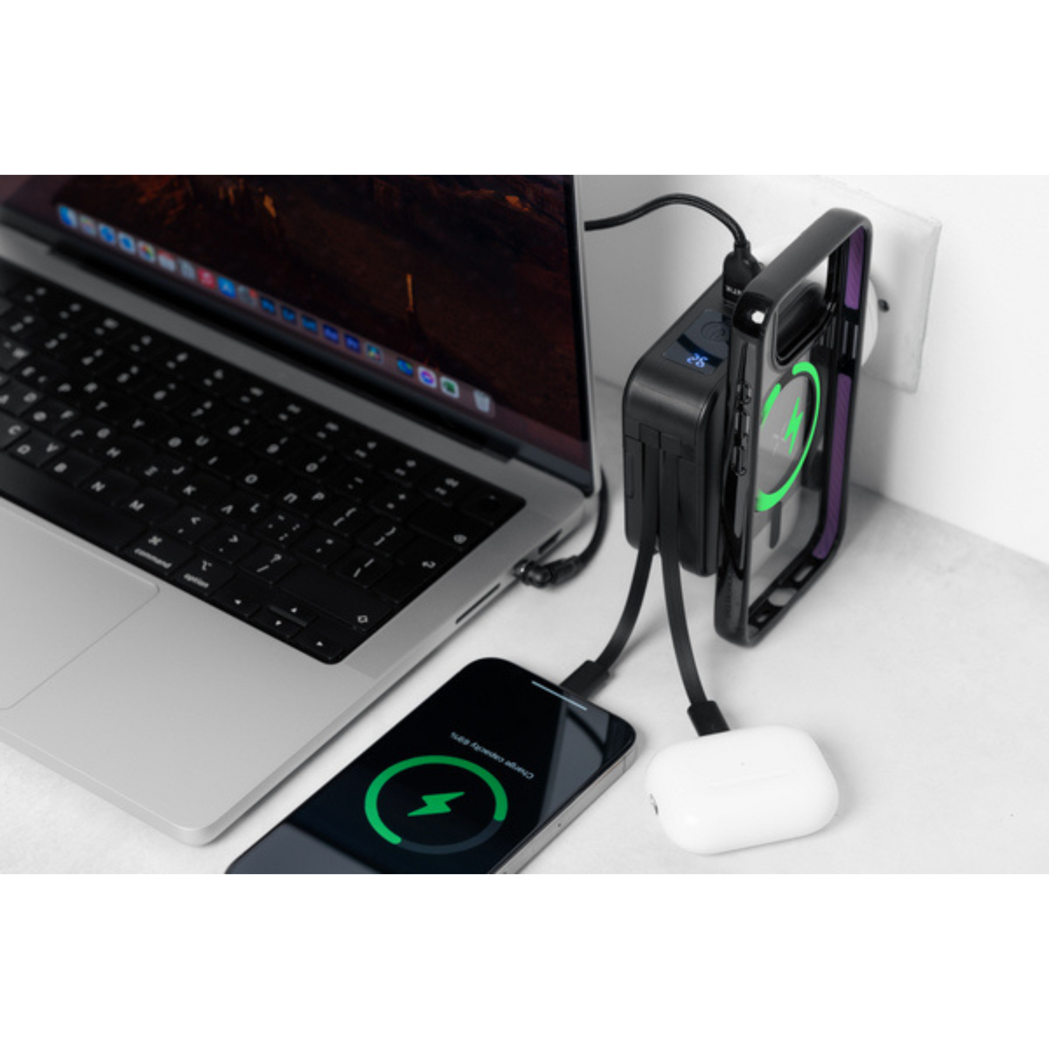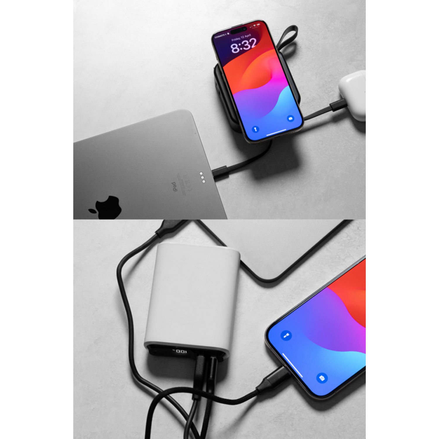 10,000 mAh PowerBank. Holds enough power to recharge AirPods 12 times, an iPhone 15 2 times, or an iPad Air 1 time.