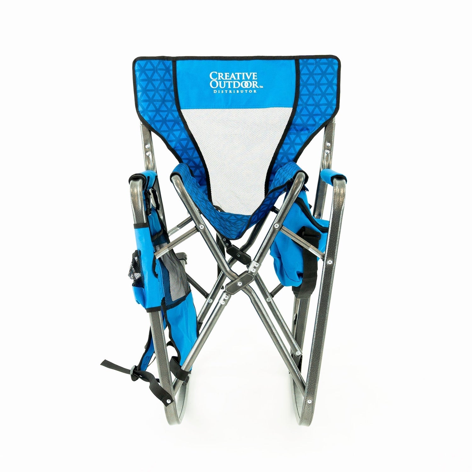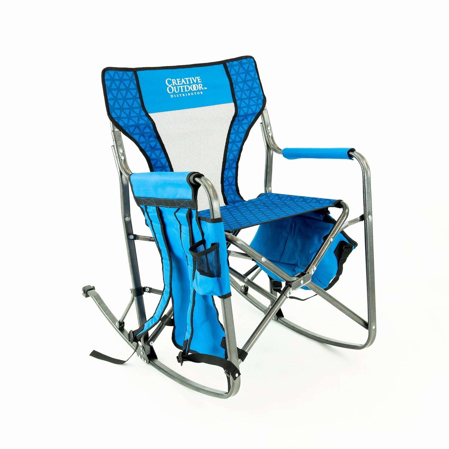 Features Include tip resistant rocking, a magazine pocket, water bottle holder, mesh back rest for ventilation, and detachable soft-sided zip top cooler with shoulder strap. To top it all off, this rocking folding chair comes with back pack straps for easy fold up and go carrying.