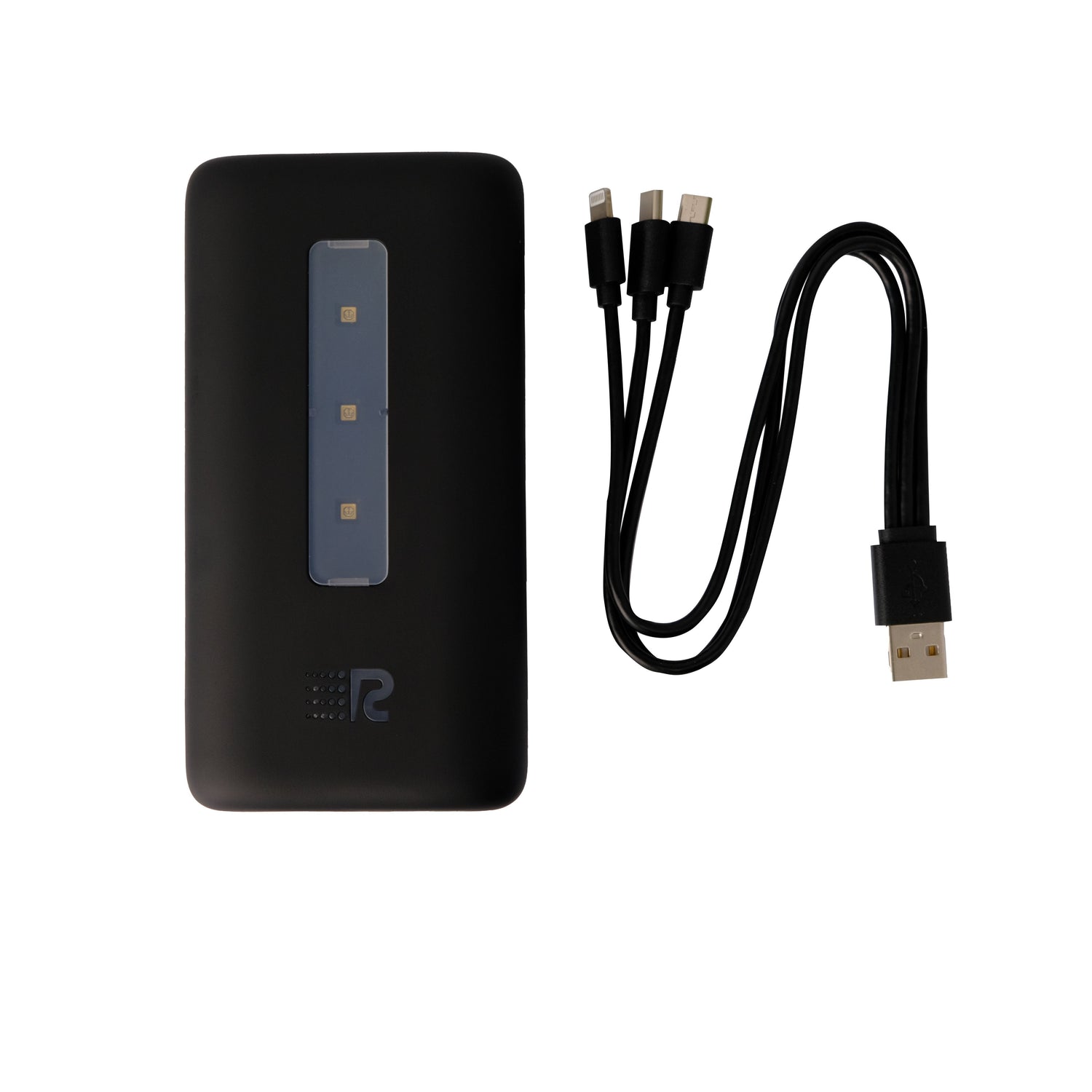 Rush Bank UVC is the "One Stop Shop" of portable devices, combining a diversity of convenient features, with extremely high-end quality. The Rush Bank Ultra includes a 10,000 mAh battery that can fully recharge most smartphones multiple times and can connect to most devices. Charge your Rush Bank Ultra and any connected device(s) at the same time with pass-through technology. It also can be recharged with any connection: Apple Lightning, USB Type-C, or Micro-USB. Recharge with Rush Bank UVC today.