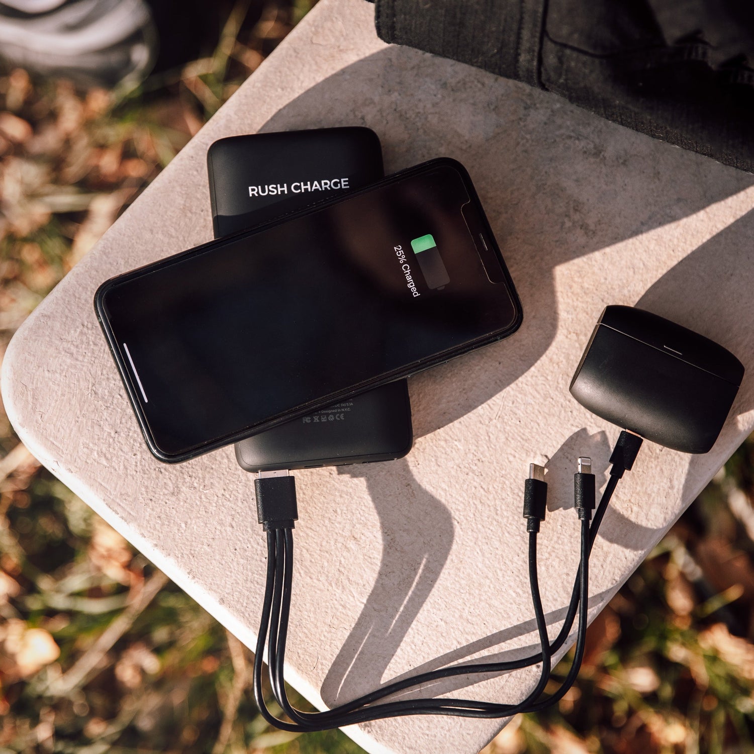 Thanks to its Pass-Through Technology, you can charge your devices while the power bank itself is being recharged. This means you can keep the Rush Bank Ultra running without interruptions, so you'll never run out of power when you need it most. With the Rush Bank Ultra, you'll always stay connected and ready for whatever comes your way!