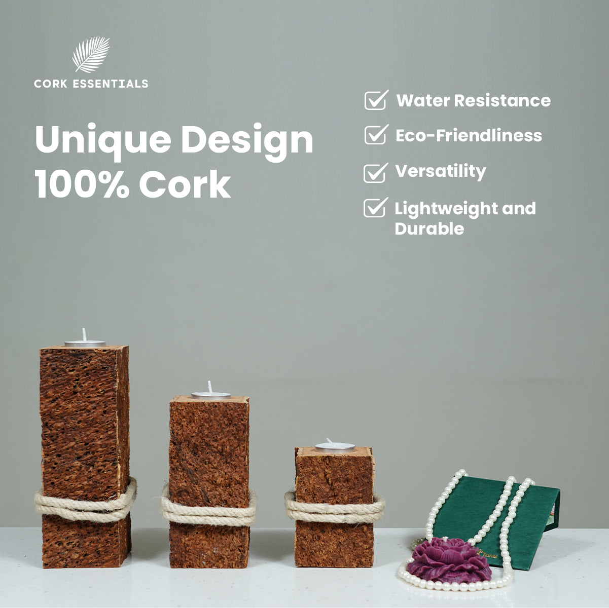 Cork Essentials prioritizes sustainability, ensuring that our products are both Eco-friendly and durable. The candle holders are perfect for everyday use, while the Cork candle holders offer a rustic charm that pairs beautifully with the modern elegance of glass.