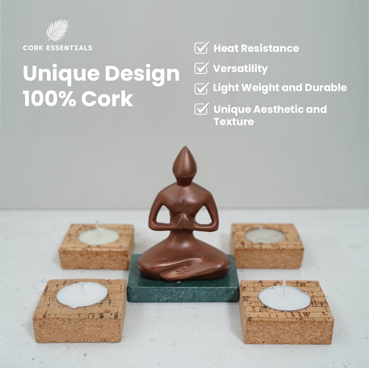Introducing the exquisite set of 4 T Light Holders in Square Shape by Cork Essentials, designed to elevate your home decor while embodying sustainability and elegance. These votive candle holders are crafted from 100% natural cork, sourced from FSC certified facilities in Spain and Portugal, ensuring that each piece not only enhances your space but also supports eco-friendly practices.Â
