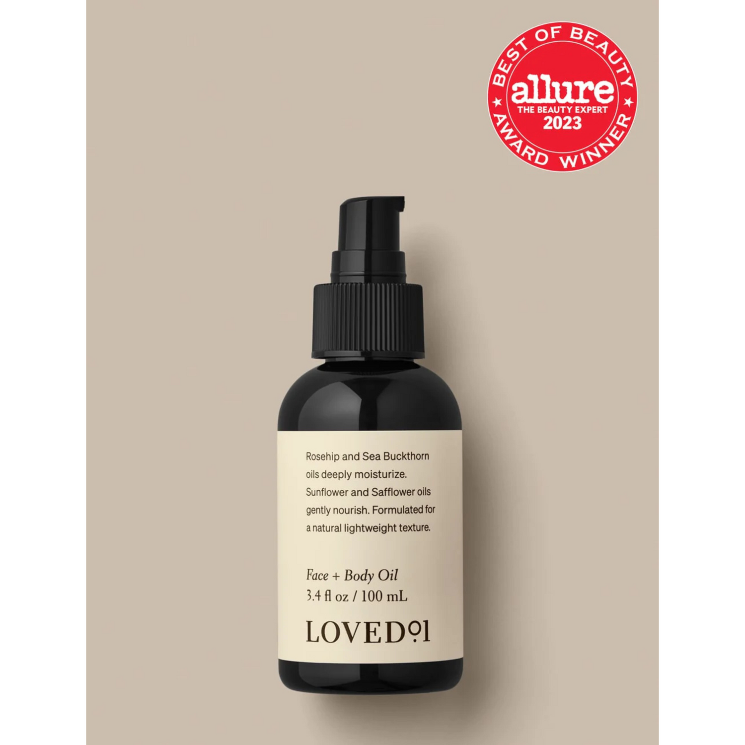 Featherweight blend of plant-based oils– including the most maximized version of L01’s signature ingredients, Rosehip and Sea Buckthorn Oil. This premium blend of plant-derived oils to deliver deep hydration and drench your skin with antioxidants to protect and repair your skin barrier while moisturizing. Naturally occurring Vitamin A in these oils will even skin tone over time, including fading stretchmarks and scars. Used head to toe, including hair + scalp, cuticles + nails, and as an oil cleanse